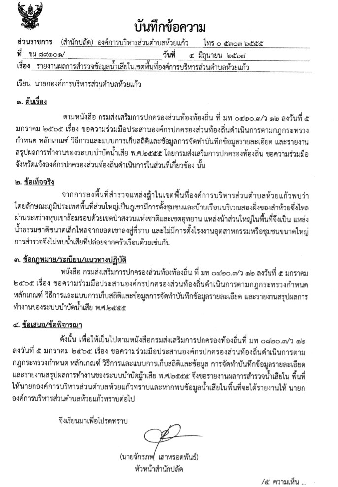 ประชาสัมพันธ์เรื่องการสำรวจปัญหาน้ำเสีย ประจำปี 2567