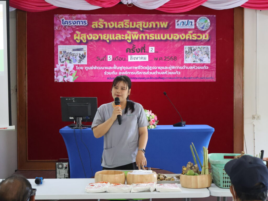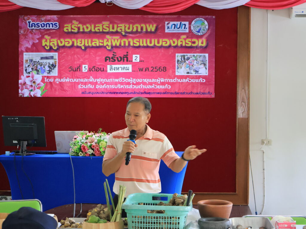 สำหรับกิจกรรมโครงการสร้างเสริมสุขภาพผู้สูงอายุและผู้พิการแบบองค์รวม ครั้งที่ 2/2568 ได้จัดกิจกรรม ณ ห้องประชุมองค์การบริหารส่วนตำบลห้วยแก้ว มีผู้สูงอายุให้ความสำคัญหลายท่านซึ่งในการจัดโครงการ ฯ ครั้งนี้ได้เชิญวิทยากรจากโรงพยาบาลแม่ออนที่มีความรู้ทางด้านสมุนไพรไทยได้สอนการพอกหัวเข่าเพื่อบรรเทาอาการปวดเบื้องต้น และการสุมยา เพื่อลดอาการคัดจมูก ซึ่งโครงการดังกล่าวได้รับการสนับสนุนงบประมาณจากกองทุนหลักประกันสุขภาพตำบลห้วยแก้ว