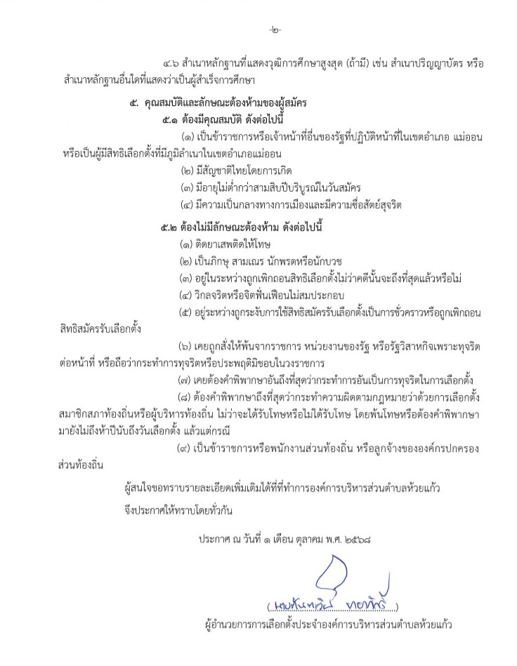 ประกาศผู้อำนวยการเลือกตั้งประจำองค์การบริหารส่วนตำบลห้วยแก้ว